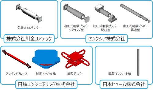 今回提供するファミリは、前回に引き続き大手免制震装置メーカー 3 社(株式会社川金コアテック、センクシア株式会社、日鉄エンジニアリング株式会社)の協力を得て、免制震建物の設計においてニーズの高いオイルダンパー(制振、免震)、耐震ブレース、制振ダンパー、球面すべり支承、鋼製ダンパーを共同で整備。また、既製杭メーカー 1 社(日本ヒューム株式会社)と既製コンクリート杭を整備しました。