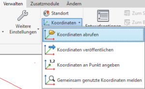 Nachdem die verlinkte CAD Datei richtig positioniert wurde, wird das Koordinatensystem ganz einfach über den Befehl Koordinaten abrufen abgeglichen:
