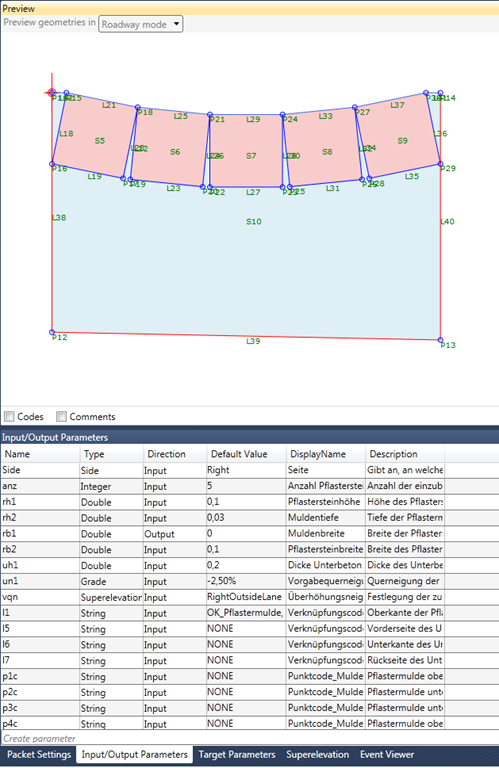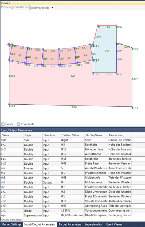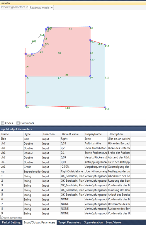 Auch die neuen Querschnittbestandteile für Deutschland, Österreich und Schweiz mit den Borden, Rinnen, Mulden und kompletten Querschnitten für den Fahrspuraufbau mit Planumsknick, Bankett, Graben, Drainage und Böschung sind mit dem Autodesk Subassembly Composer erstellt worden.