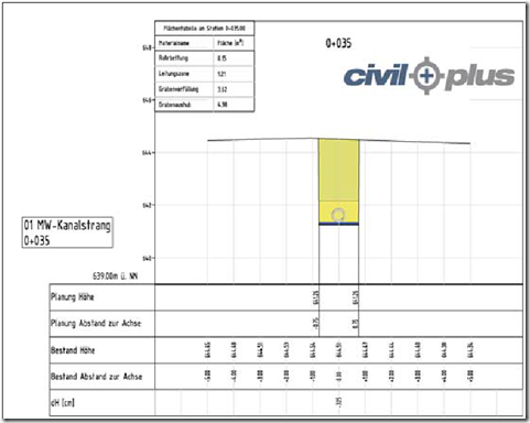 Und desgleichen als 3D-Profilkörper erzeugt und als Querprofilpläne ausgegeben:
