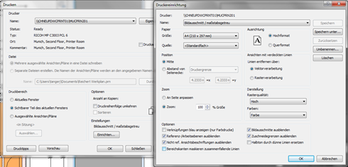Im AutoCAD zum Beispiel kann zu jedem Zeitpunkt der Planung ein beliebiger Ausschnitt eines Grundrisses in einem bestimmten Maßstab gedruckt werden, in dem per Fensterauswahl dieser Bildausschnitt gewählt, anschließend der Maßstab und die Ausrichtung eingestellt wird.