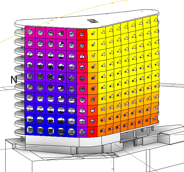 • Nutzung der Analysedaten für die Parametrisierung der Geometrie (z.B. allgemeine Formfindung, Ausrichtung von Sonnenpaneelen, Fassadenöffnungen / Verschattung abhängig von der Sonneneinstrahlung, Standardisierung von Fassadenpaneelen)