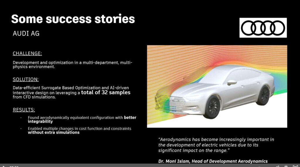 Audi explored the use of AI-driven sensitivity maps and rapid drag predictions to guide surface refinement, enabling their teams to validate design directions earlier and reduce late-stage simulation churn.