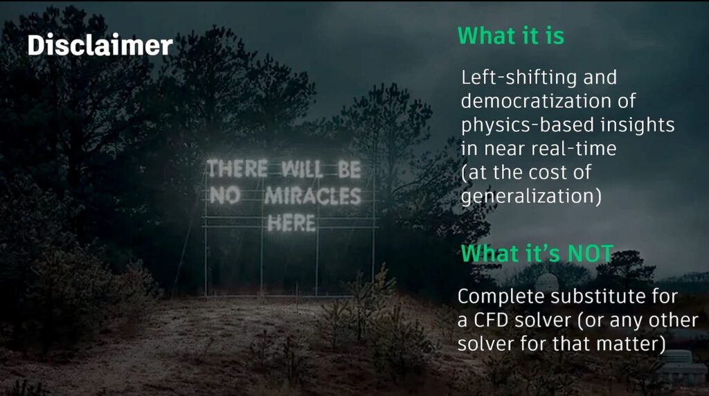 Using AI simulations is not a magic trick. By left-shifting insights and making them available within Alias, we are trading the generalizability of a “first principle” tool for the speed of an AI model. This is not a “solver.” The AI model will work on what it was trained to do, but it can’t solve every problem, and it’s not going to replace simulation.