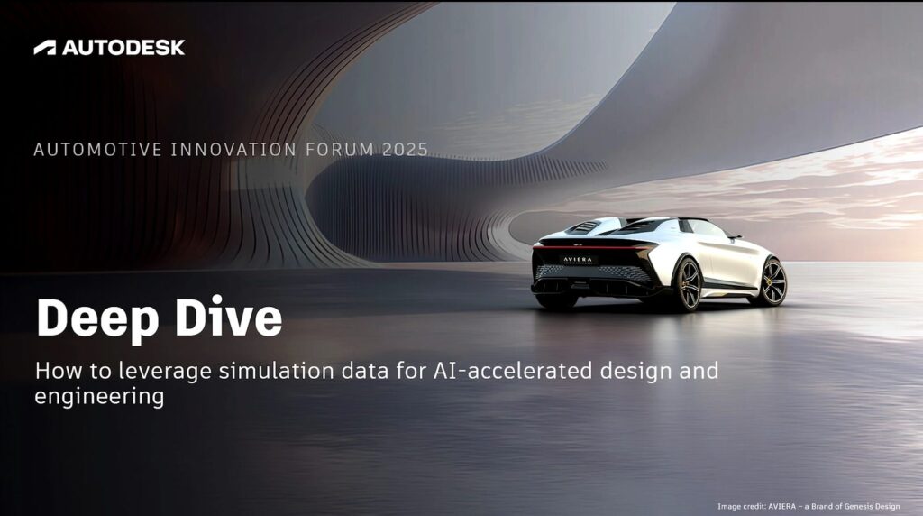 At AIF 2025, the Autodesk NavPack team presented a clear message: AI is rapidly reshaping the relationship between design and engineering. Across “AI-accelerated Design and Engineering” and “Deep Dive: How to leverage simulation data for AI-accelerated design and engineering,” Matthias Bauer and Jakob Lohse demonstrated not only why AI-driven workflows matter, but how designers and engineers can build and deploy these systems using their own high-quality simulation data.