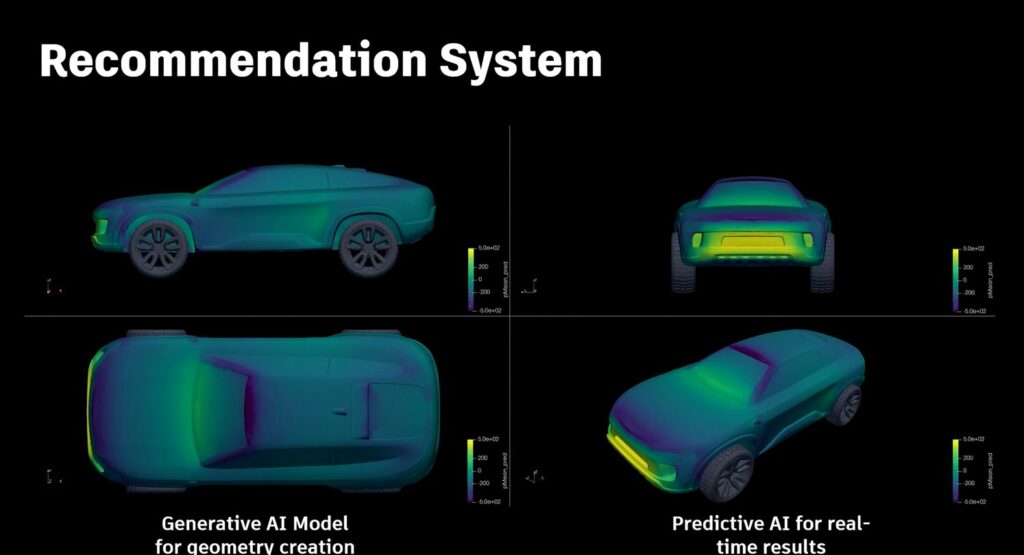 This enables exploration of a range of plausible shapes within the expected design language, each of which can be evaluated instantly using predictive AI.