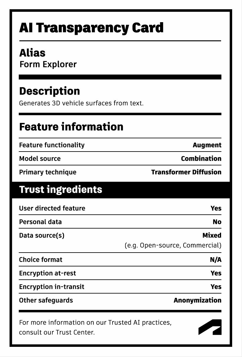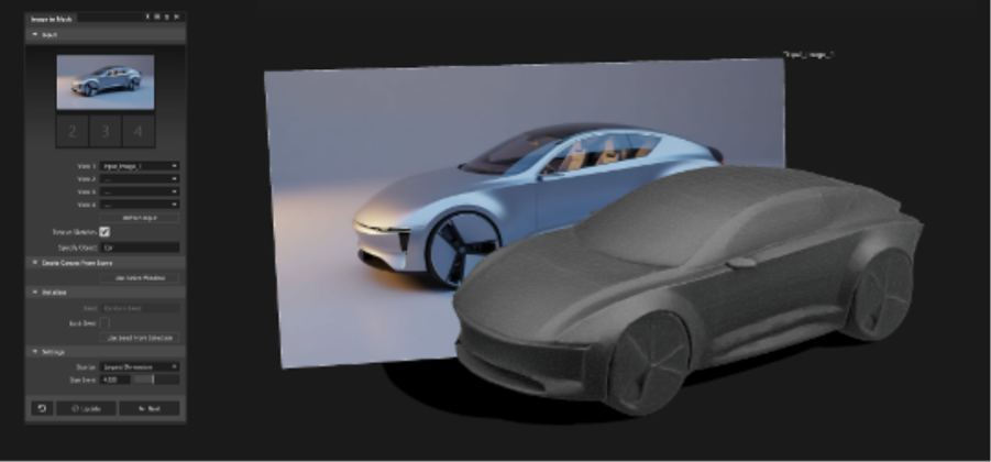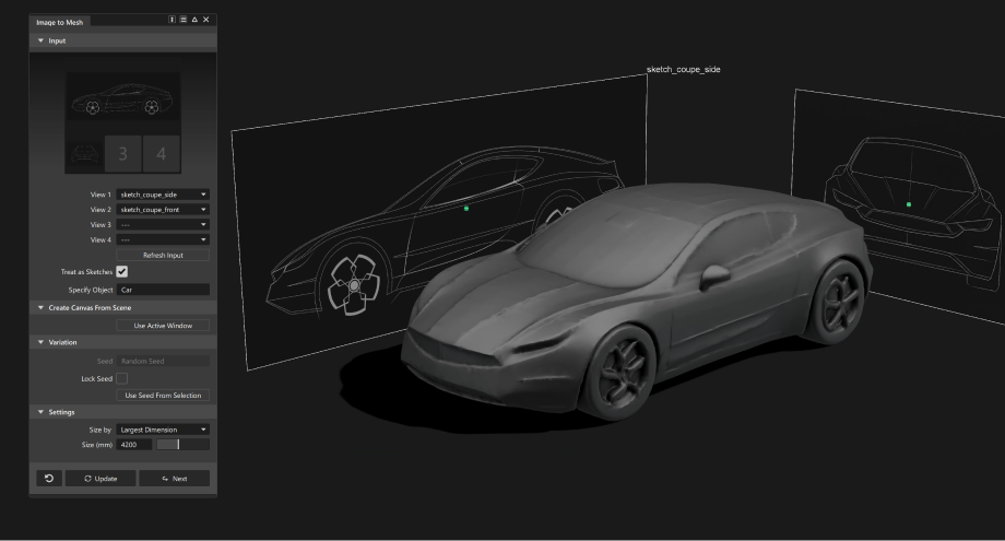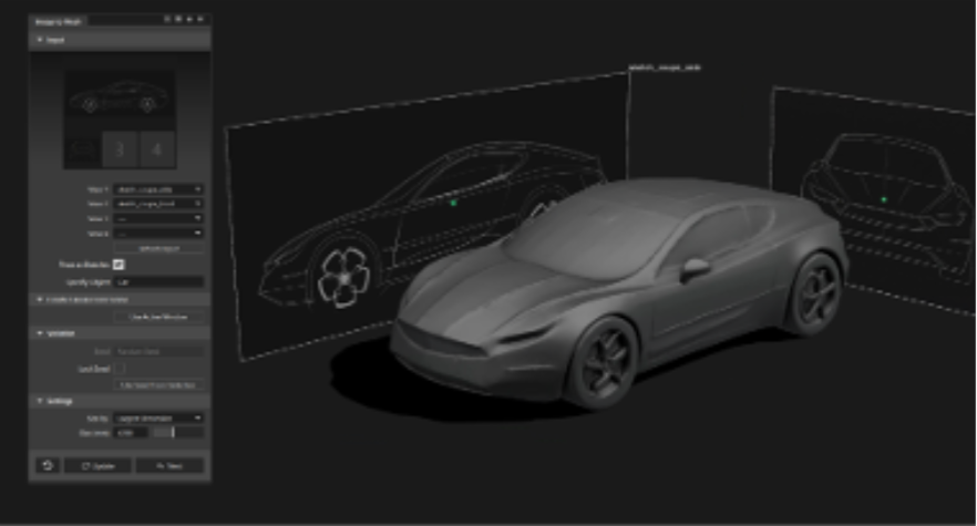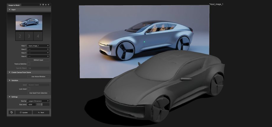 Earlier iterations focused on text-driven generation. With 0.2, the emphasis shifts to visual input — allowing teams to generate scaled meshes directly from sketches, renderings, photography, or Alias canvases.