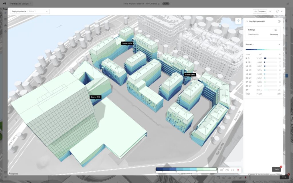 Introducing Forma Site Design’s daylight potential analysis: enabling you to visualize daylight potential in context with the surrounding buildings and environment, in minutes from day one. Meaning you can make fast, smart decisions that improve building performance and enhance daylight on your site.
