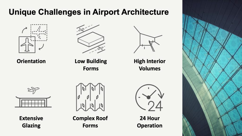 Airports are large-scale, horizontally oriented facilities that rely on extensive glazing to create bright, naturally-lit environments. This design strategy enhances passenger experience while reinforcing the architectural identity of openness and flow. However, these design choices result in high operational costs, particularly due to the high volumes and the need for significant HVAC systems.