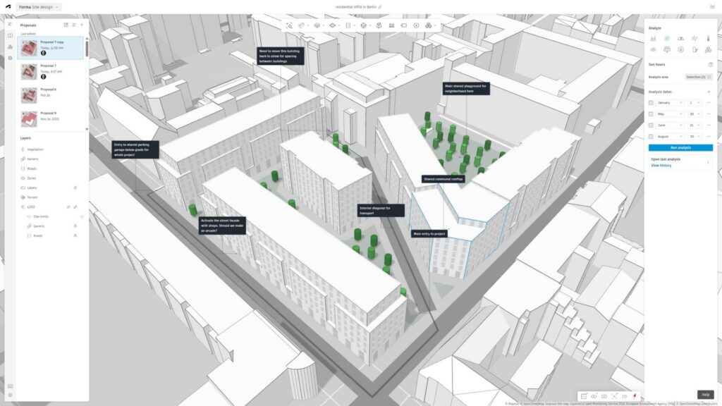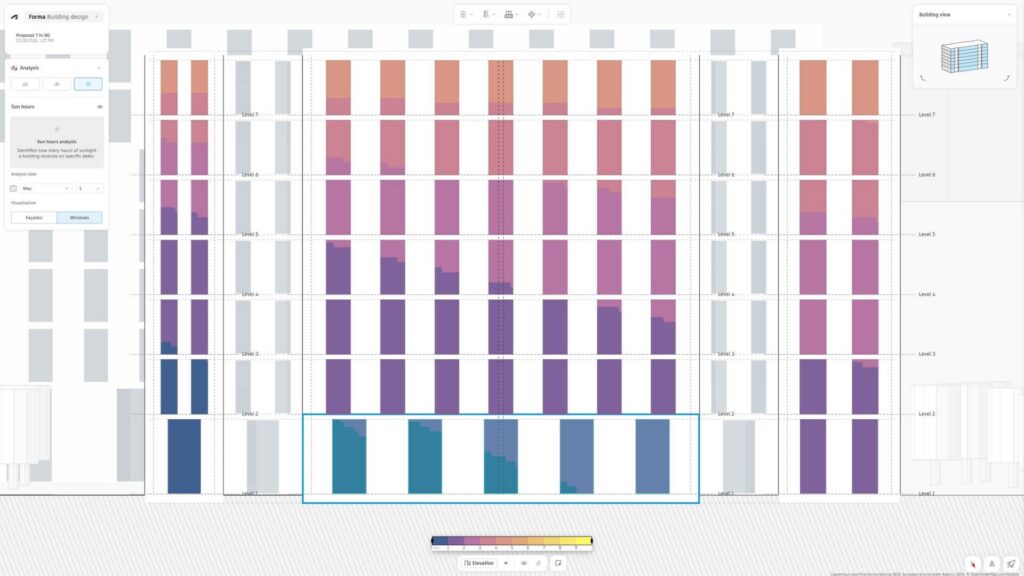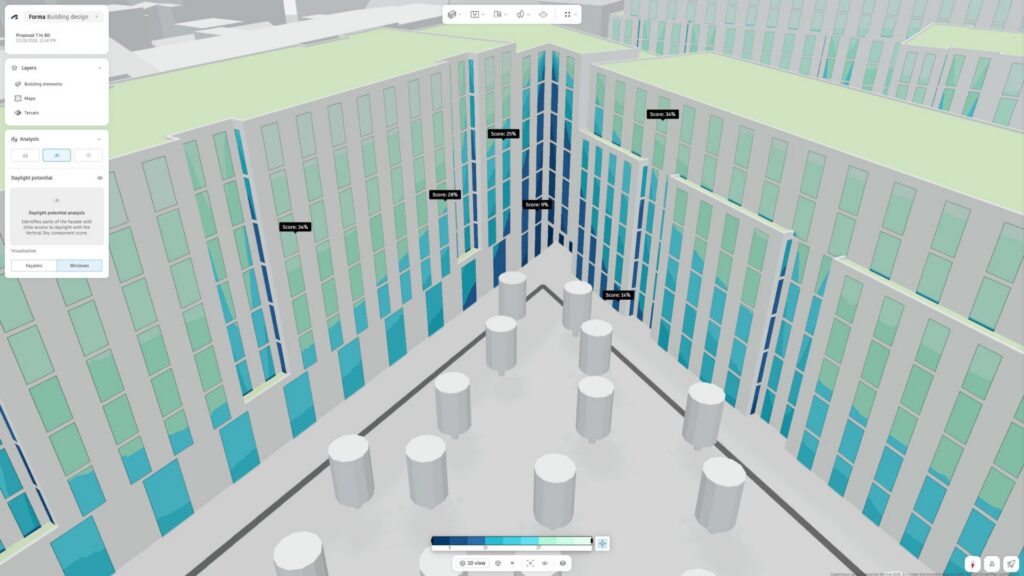 Tools like Forma Building Design are designed to enable more design exploration at the earliest stage of design thinking. Architects can quickly shape different options without overcommitting time to complex modeling. By integrating normally separate and complex analysis –such as daylight potential, sun hours, total carbon – in the design environment, it allows architects to test performance in parallel with design rather than sequentially afterwards. By front-loading analysis, it makes uncertainty visible while there’s still room to respond to it.
