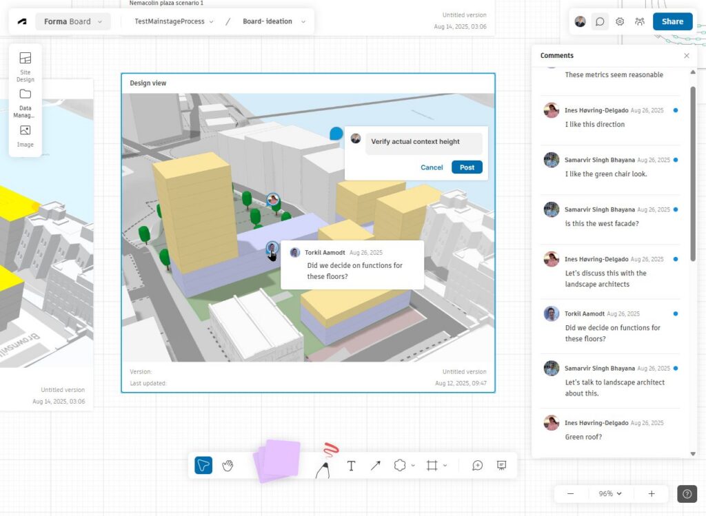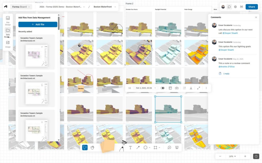 Forma Board brings together a set of capabilities that support more connected design reviews and collaboration.