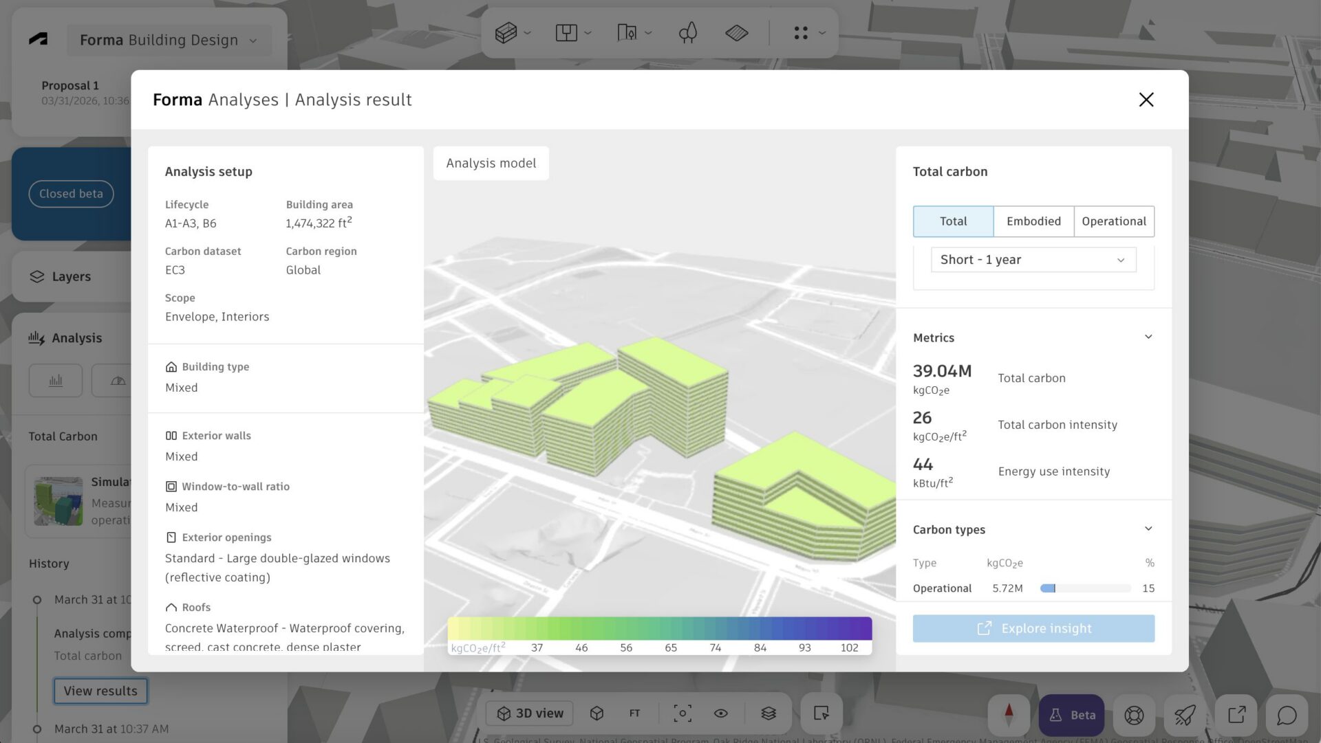 Forma Building Design helps teams determine building design direction for specific plots and blocks, including unit mix — so they can explore more ideas before it’s time for BIM and then move forward. It is used for schematic design.