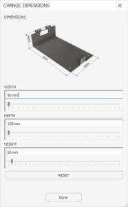 An image of Autodesk Inventor iLogic form user interface to control the dimensions of a part
