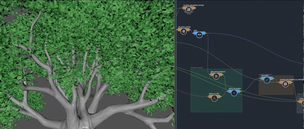 “Take, for example, the creation of five unique trees, each with a custom-designed canopy. By leveraging Bifrost’s power, we were able to instance every single twig and place apples on those twigs with precision, all while maintaining complete control over the canopy shape. This flexibility was key in achieving exactly what the directors envisioned.”