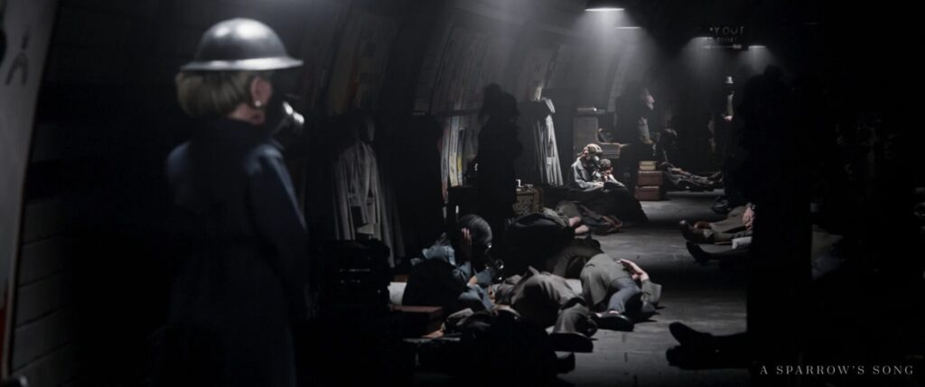 One particular scene, however, the crowd scene within the bomb raid bunker, presented their biggest technical challenge, which required the creation of its own custom pipeline. “I’m really proud of the workflow Elias and I developed to bring the shelter environment to life,” Vincent says.