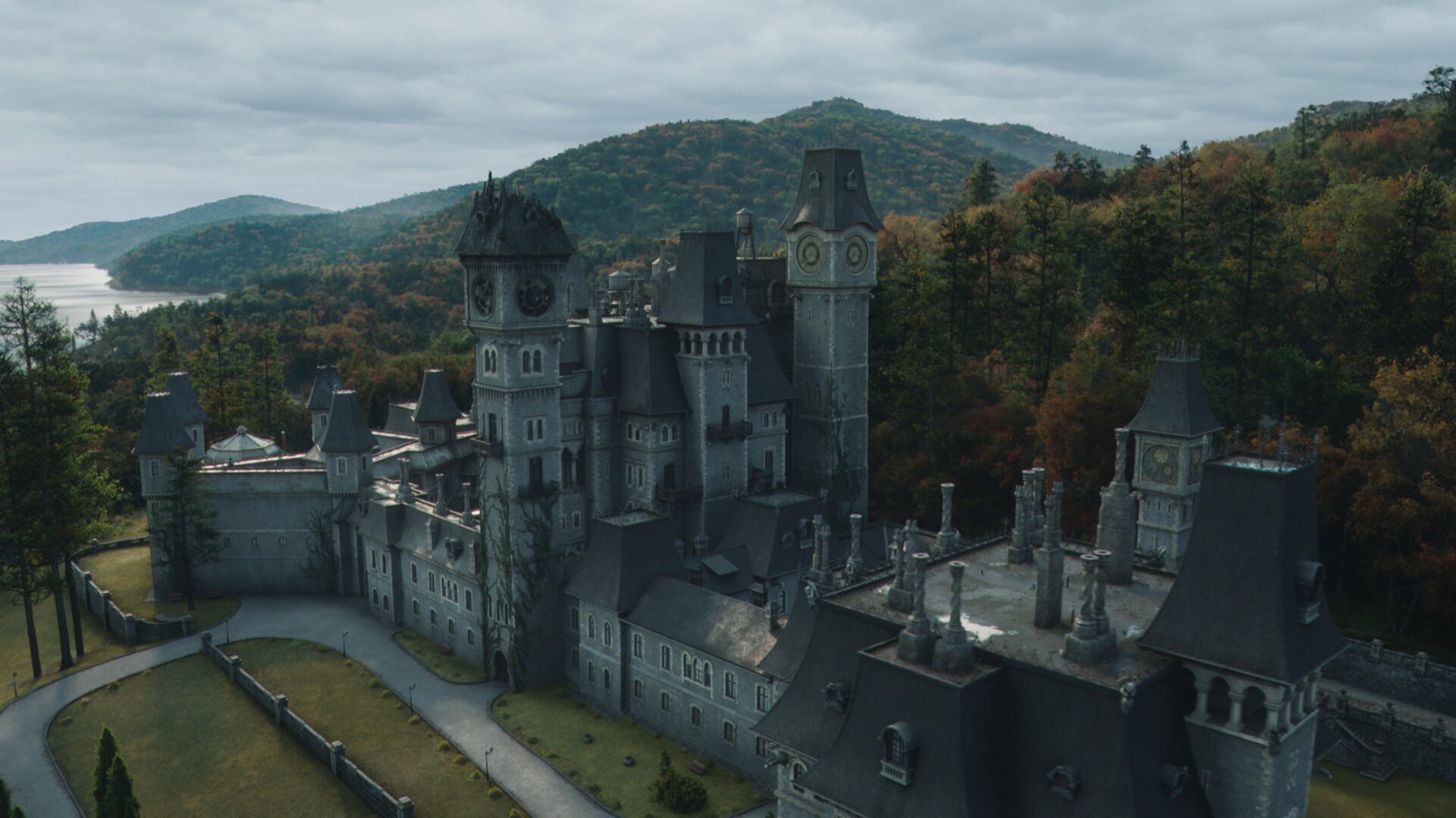 In Season 2, Nevermore Academy was a fully CG environment. Guided by Tim Burton’s distinct visual style, Rodeo FX designed the environment as a fully modular asset, giving the team the flexibility to reshape the castle shot by shot.