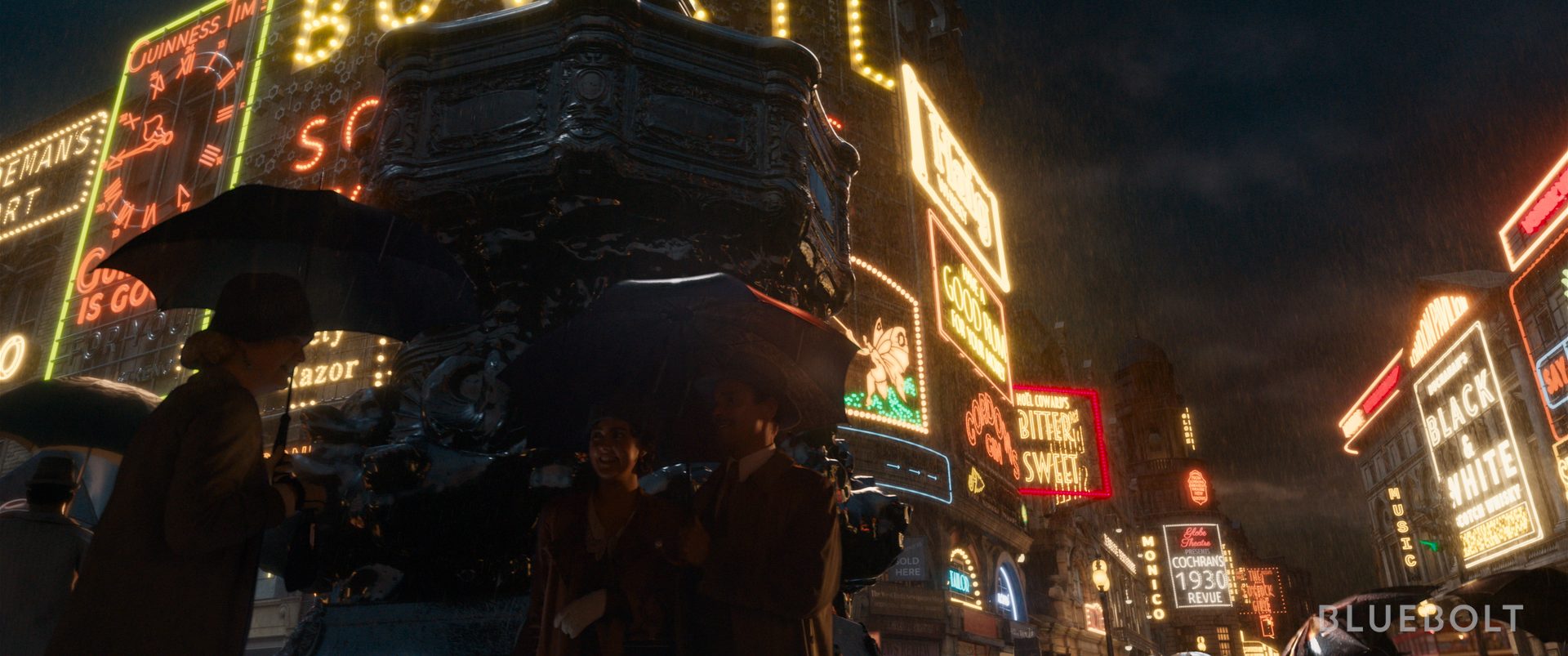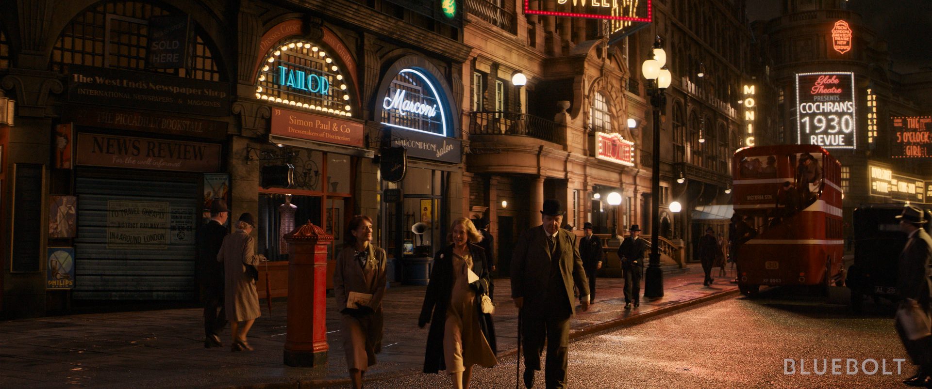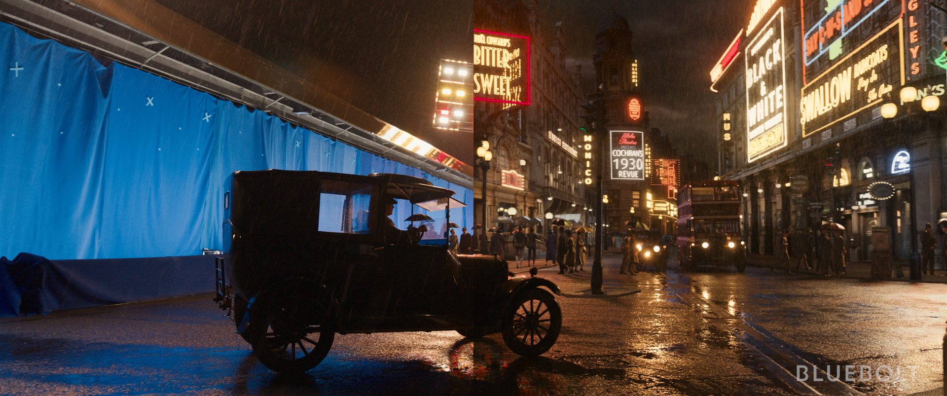 “As a Londoner who has lived and worked in the heart of the West End for longer than I care to admit, it was very exciting,” says Dave Cook, CG Supervisor at BlueBolt. “Not only to faithfully recreate Piccadilly Circus of 1930, but to evoke the atmosphere and allure of the West End in the opening shot of a well-loved show with such high production values.”
