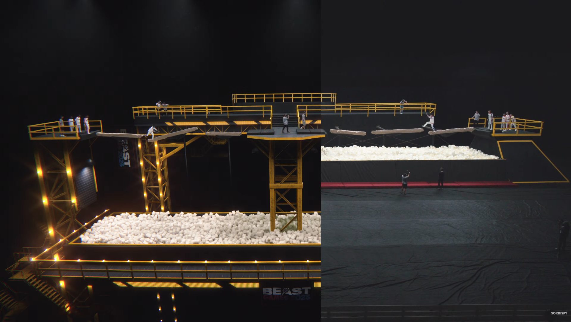 The team’s collaboration with MrBeast has evolved in parallel. While early projects relied on modest budgets and smaller builds, today, SOKRISPYMEDIA helps highlight and replicate some of the largest-scale productions on TV. From the start, Wickert says there was a clear mandate to “build the magic to elevate production value.” For their video exploring Beast Games Season 2, that mandate scaled exponentially as they set out to replicate the show’s massive setups.