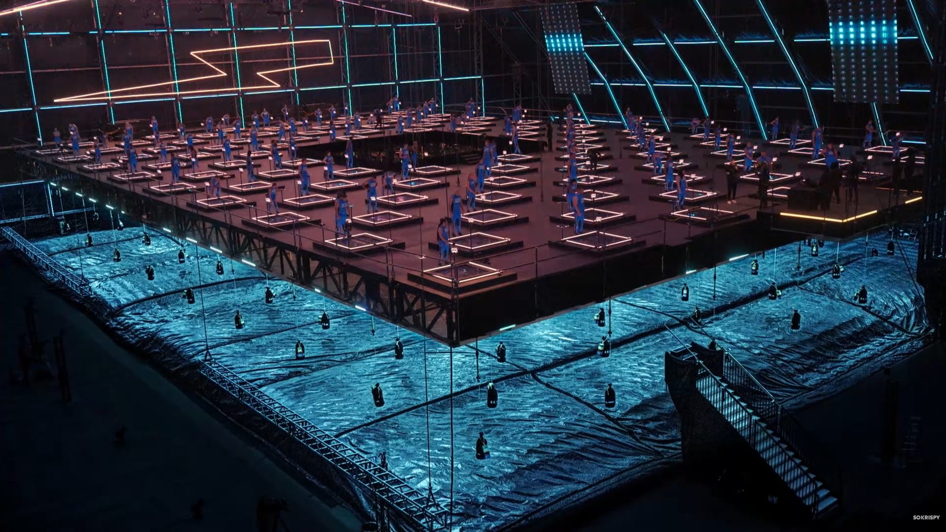True to MrBeast’s approach, Beast Games Season 2 grew in scale and complexity—introducing larger sets, more intricate environments, and fully realized worlds built for both competition and storytelling. “Walking on set this time around, the scale is monumental,” says Wickert. The set included the world’s largest LED floor, massive obstacle courses, and Beast City, the contestants’ custom-built habitat, including sleeping units, pool, gym, basketball court, café, and the world’s only 24/7 free Starbucks.