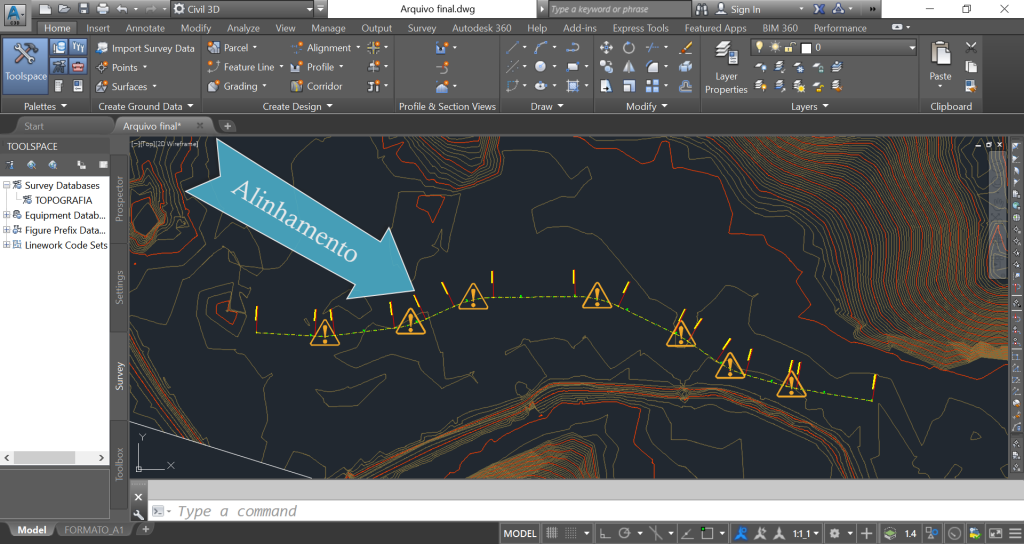 alinhamento-criado-a-partir-de-polylines-no-civil-3d Polylines no Civil 3D e o processo de construção de superfícies, alinhamentos e redes