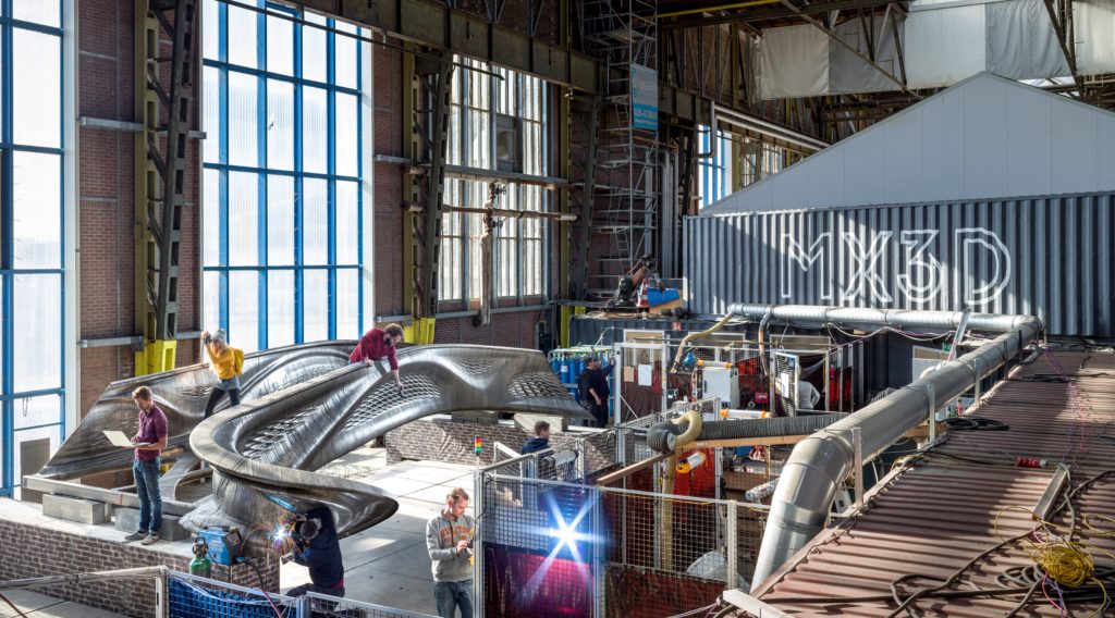 Die Arbeit des MX3D-Teams an der innovativen 3D-gedruckten Brücke wird unterstützt durch Software von Autodesk. Mit freundlicher Genehmigung von MX3D.